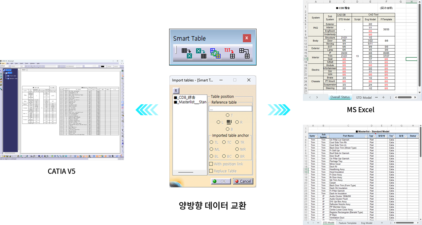 - CATIA V5의 도면 테이블과 Microsoft Excel Table 양방향 데이터 교환